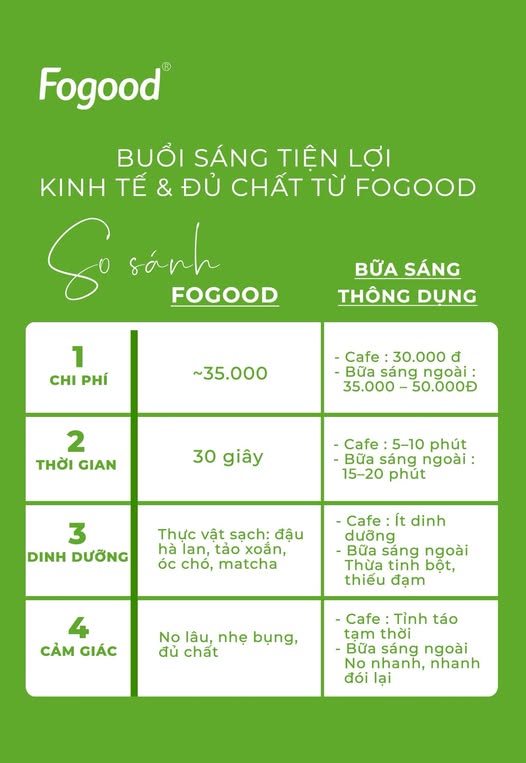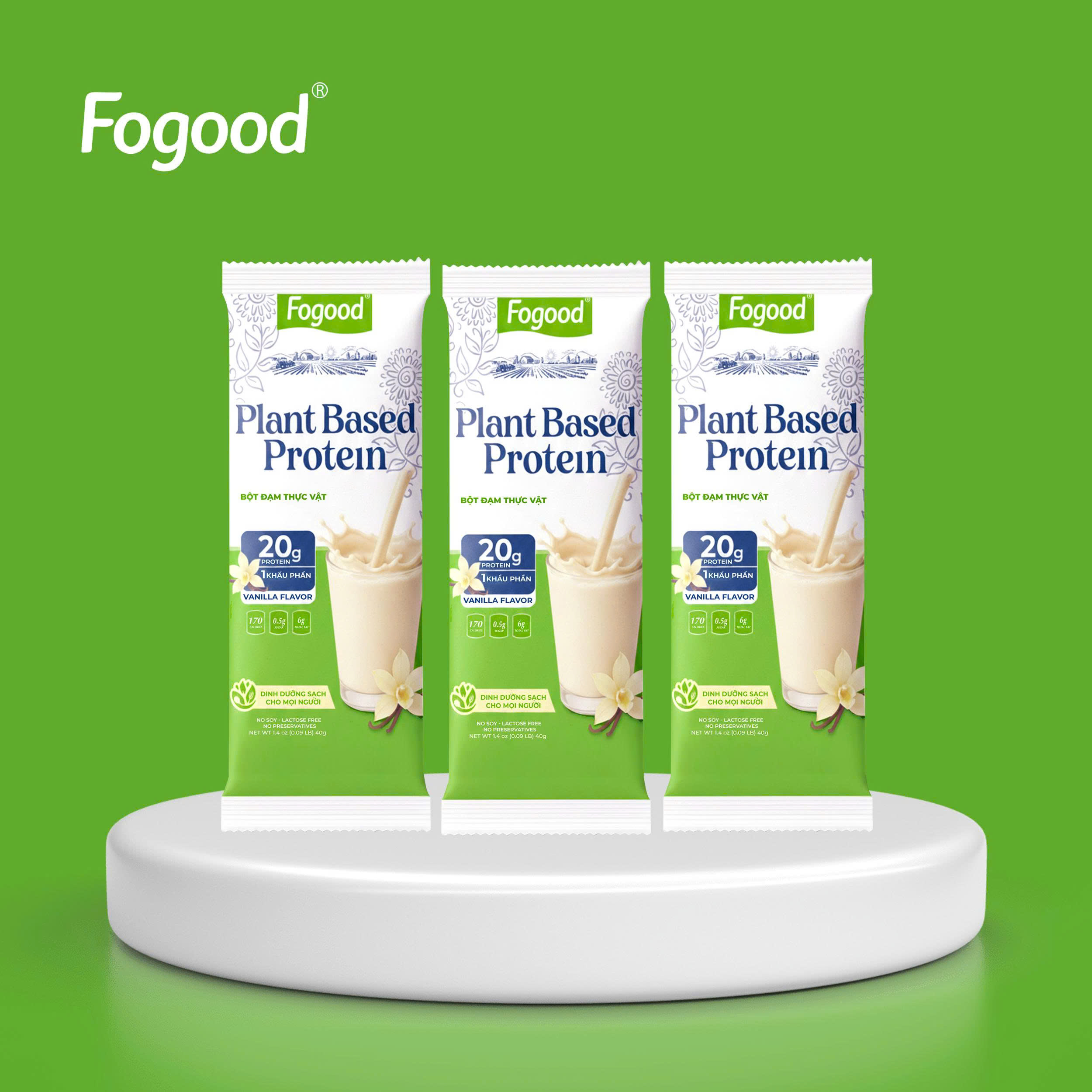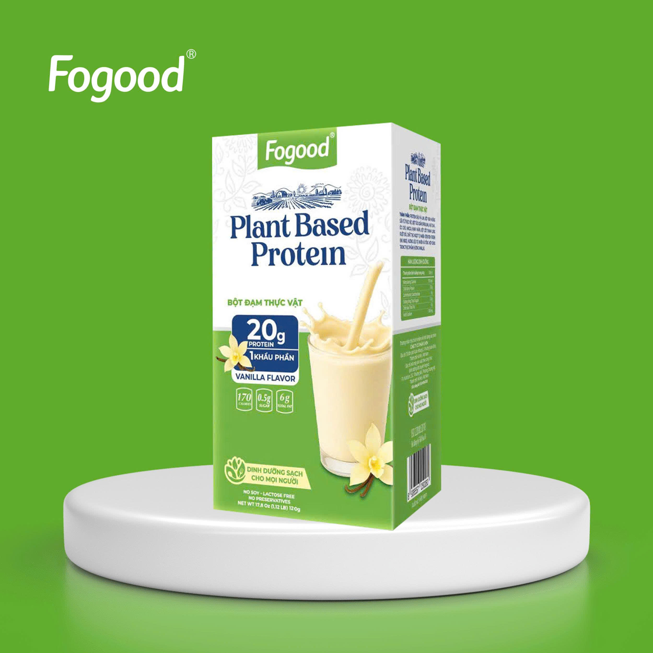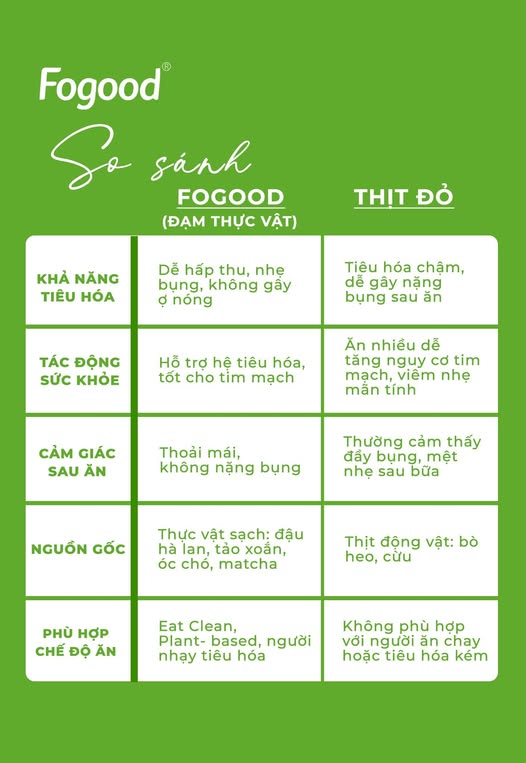 Fogood mang đến giải pháp dinh dưỡng thuần thực vật hiện đại với nguồn đạm sạch từ đậu Hà Lan vàng, kết hợp cùng tảo xoắn quý, hạt chia, óc chó, macca và hạnh nhân tạo nên một công thức cân bằng, giàu dưỡng chất và thân thiện với hệ tiêu hóa.